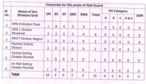 A total of 1371 vacancies are available out of which 1029 for Postman Post, 15 for Mailguard and 327 for MTS Posts. Maharashtra Postal Circle Recruitment across various districts of the state.